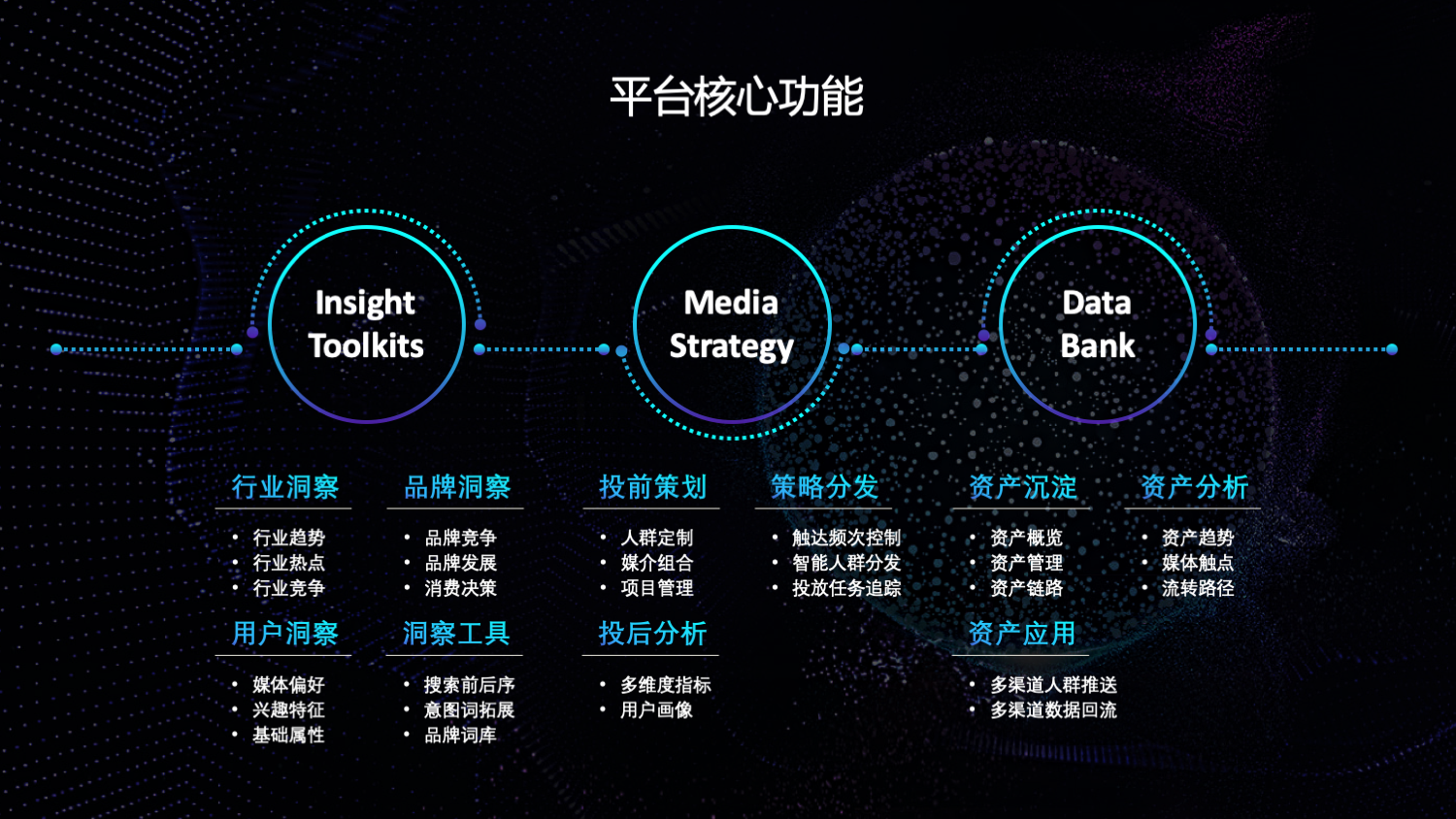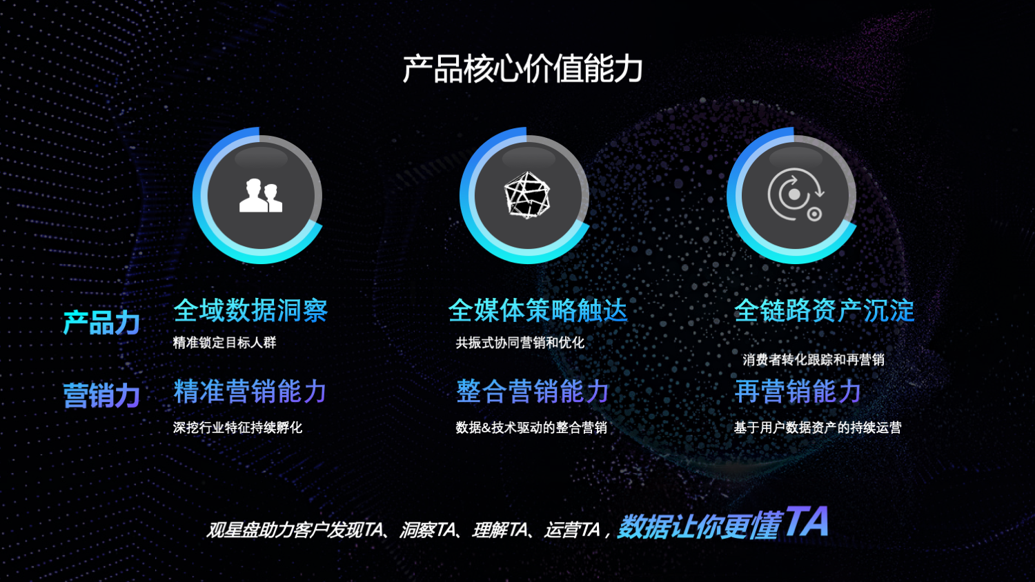 观星盘,作为N.E.X.T.百度全链AI营销的智能数据平台,基于百度AI技术及大数据能力,针对不同行业深度洞察品牌和用户特征,全场景多维度智能分析;一站式全媒体用户触达n投后效果跟踪和度量;全链路数据资产沉淀、分析和再营销,构建覆盖用户全生命周期的整合营销能力。